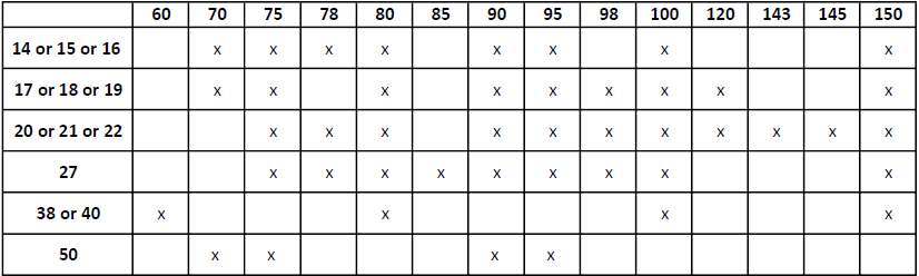 - 27 x 150, 27 x 200, 27 x 250